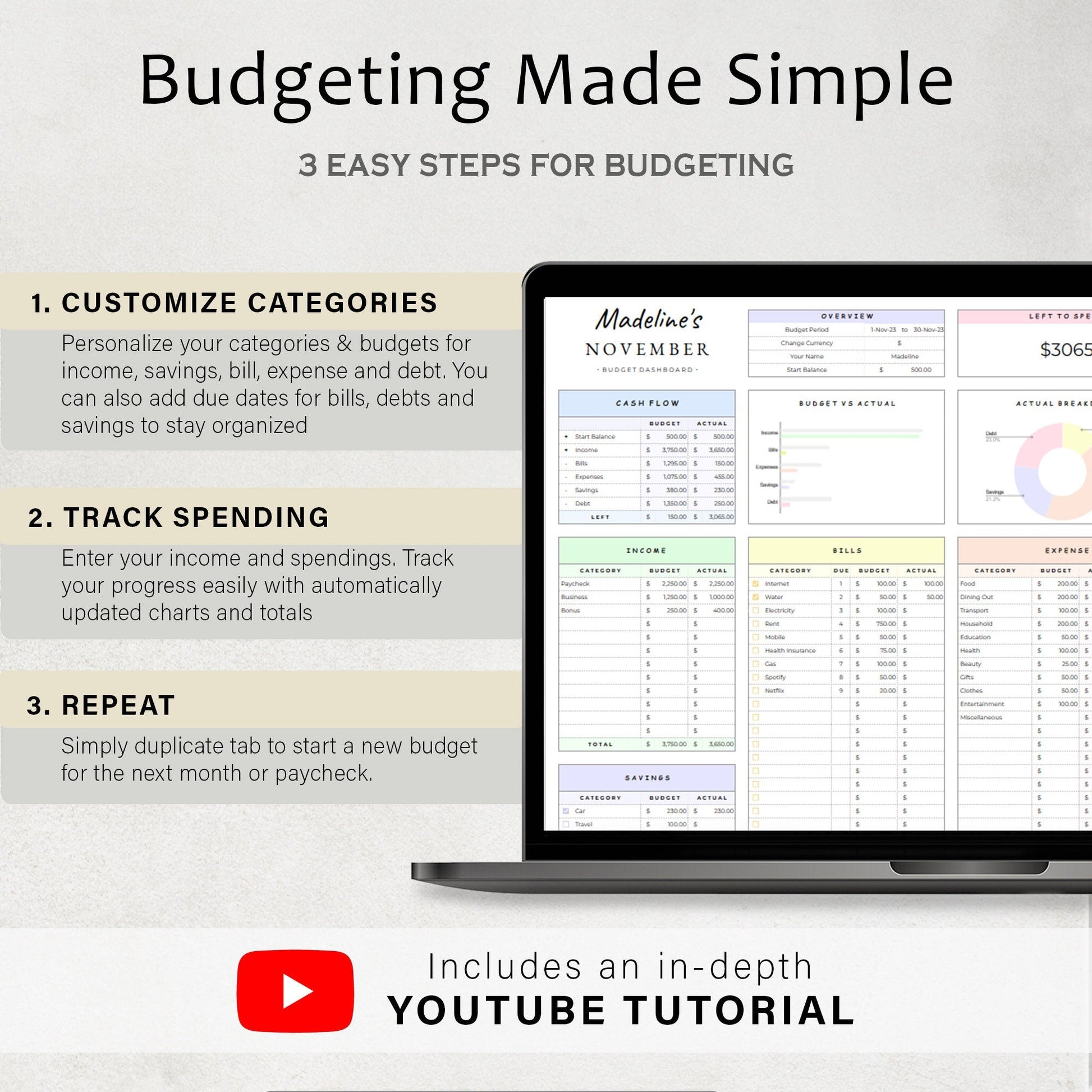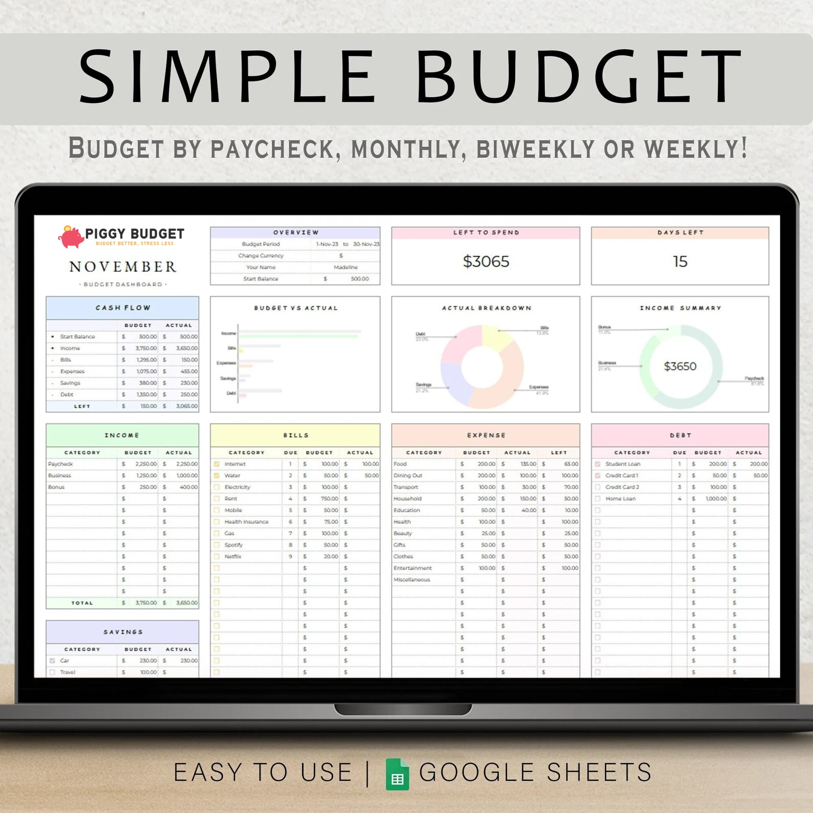 Streamline your finances effortlessly with our beginner-friendly Budget Planner Google Sheets. This Budget Spreadsheet has only 1 tab to simplify financial planning, helping you manage your income, expenses, debt, bills and savings on a Weekly, Biweekly, Monthly or Paycheck basis. Whether you're a beginner or an enthusiast, our Simple Budget Google Sheets is your go-to tool for achieving financial stability and mastering budget management. Start budgeting with 3 easy steps, budgeting has never been so easy!